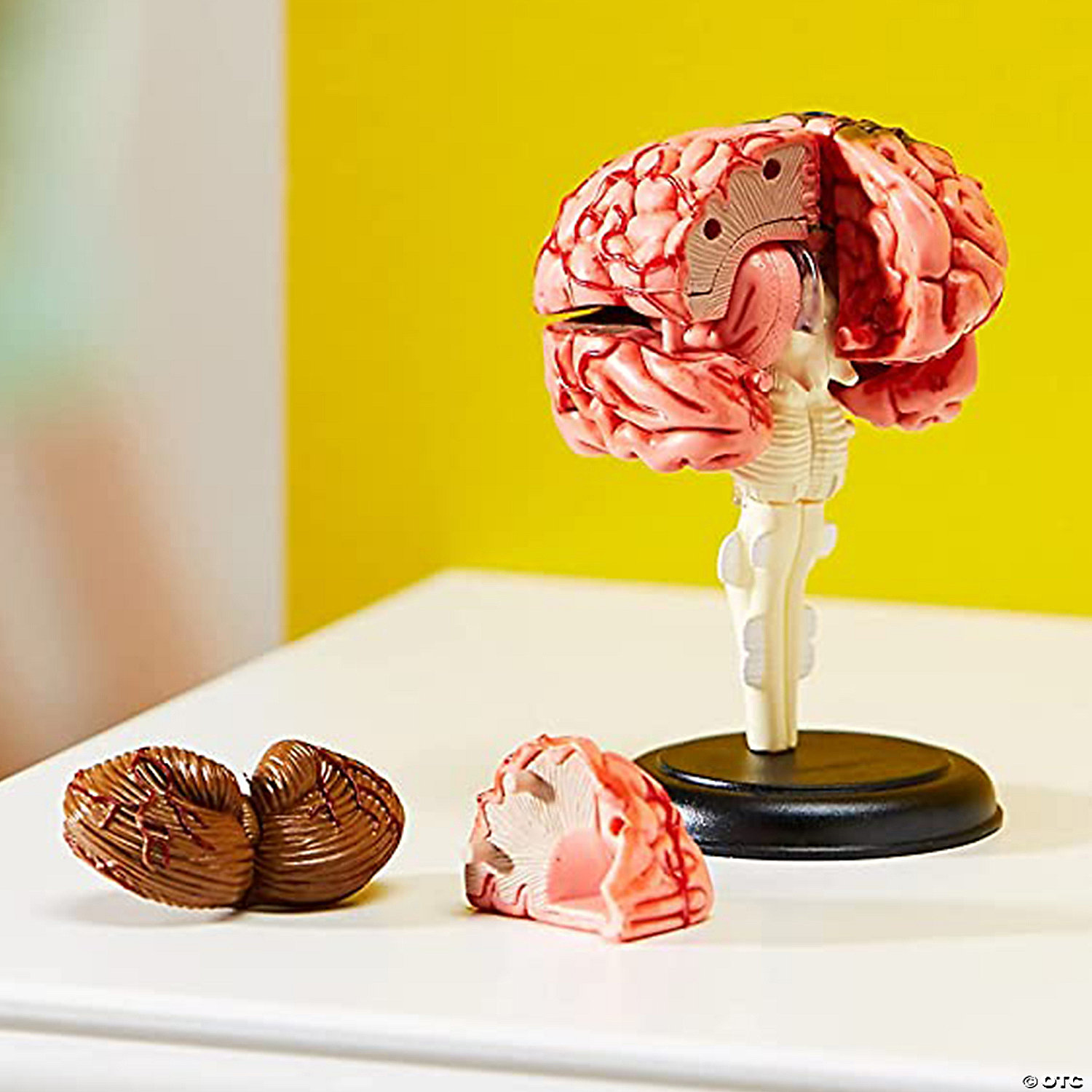 Students can look inside their own heads with this realistic model. Features cerebellum, frontal, parietal, temporal and occipital lobes, corpus callosum, brain stem, hippocampus, ventricles, insula, corpus striatum, internal capsule and lentiform nucleus. Perfect in a nervous system center for a deeper understanding of how the parts of the brain work together. Includes 31-Piece model, display stand, and guide with facts and photo-illustrated assembly instructions. Measures 3.8"H when assembled.
