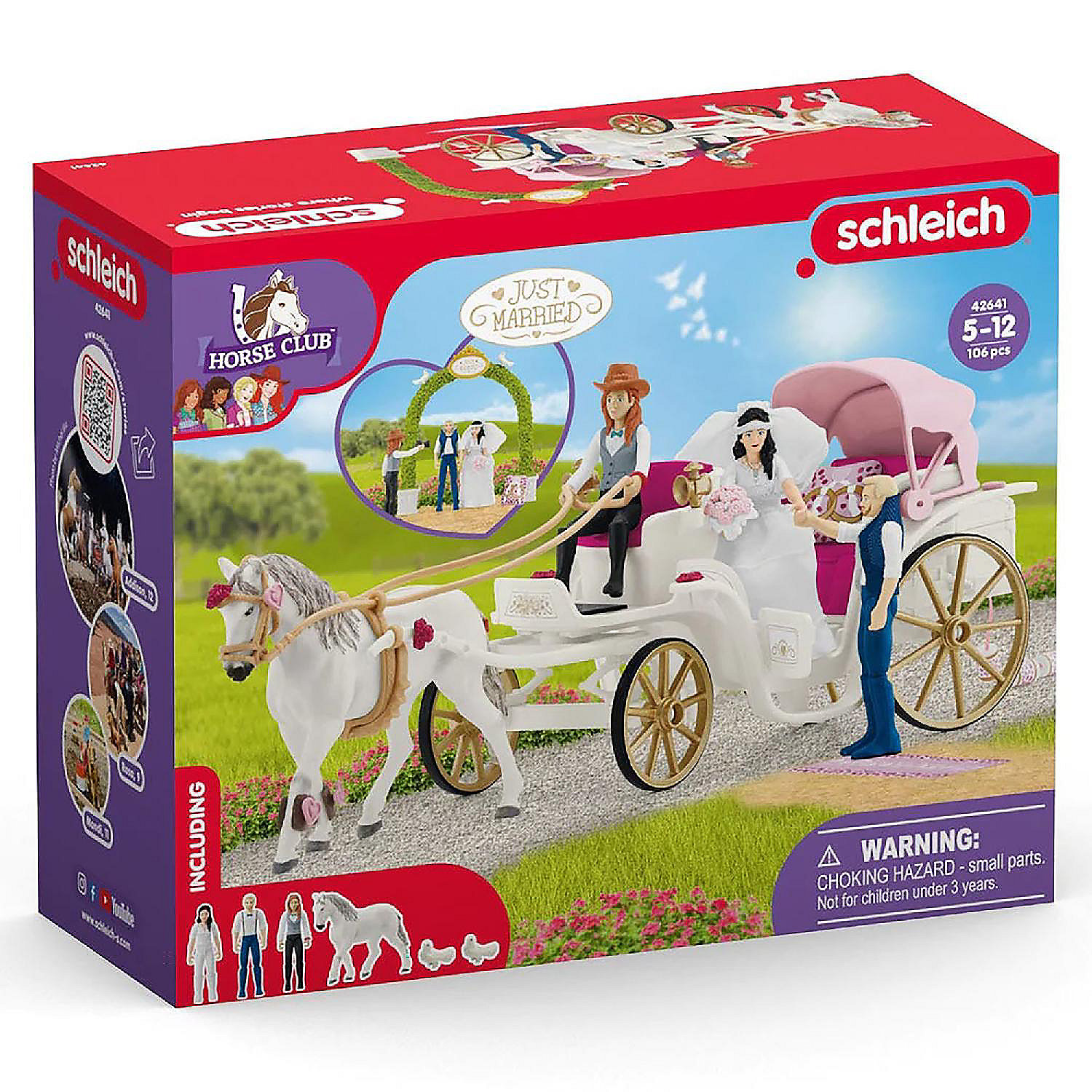 Horse Club: Wedding Carriage - A Wedding At Lakeside! A Wedding On The Lake! With The "Wedding Carriage" Playset From Schleich© Horse Club, You Can Accompany Emily And Toby, The Bride And Groom, On Their Very Special Day. Hannah Steers The Carriage Through The Pretty Boxwood Arch And Emily Throws Her Bridal Bouquet Into The Crowd. Quick, Take A Picture! The Beautiful Couple And The Delightfully Decorated Lipizzaner Look Great! Hanna Has Decorated The Lipizzaner And The Carriage To Make Everything Look Festive. The Horse Is Wearing Gaiters With Hearts On And The Bridle Is Also Decorated With Hearts. The Bridal Couple Make Themselves Comfortable On Heart-Shaped Cushions In The Carriage And Toast Each Other With Champagne. What Is This? There'S A Secret Hiding Compartment Under The Seat! There Are Some Apples Tucked Away For Later, So The Lipizzaner Can Be Rewarded For Its Hard Work. Dimensions: 16.5 X 4.9 X 7.3 Inch Inspiring Figurines To Play Imaginatively And Freely. So Authentic, So Detailed, Even Mother Nature Approves. High-Quality Craftsmanship To Withstand Father Time. Schleich: As An 85-Year-Old German Toy Company, We Are Committed To Manufacturing Realistic Toys With The Highest Standard Of Quality And Safety For Years Of Durable Play And Collectability. All Products And The Materials Used Meet Or Exceed The Strictest Applicable Toy Safety Requirements.