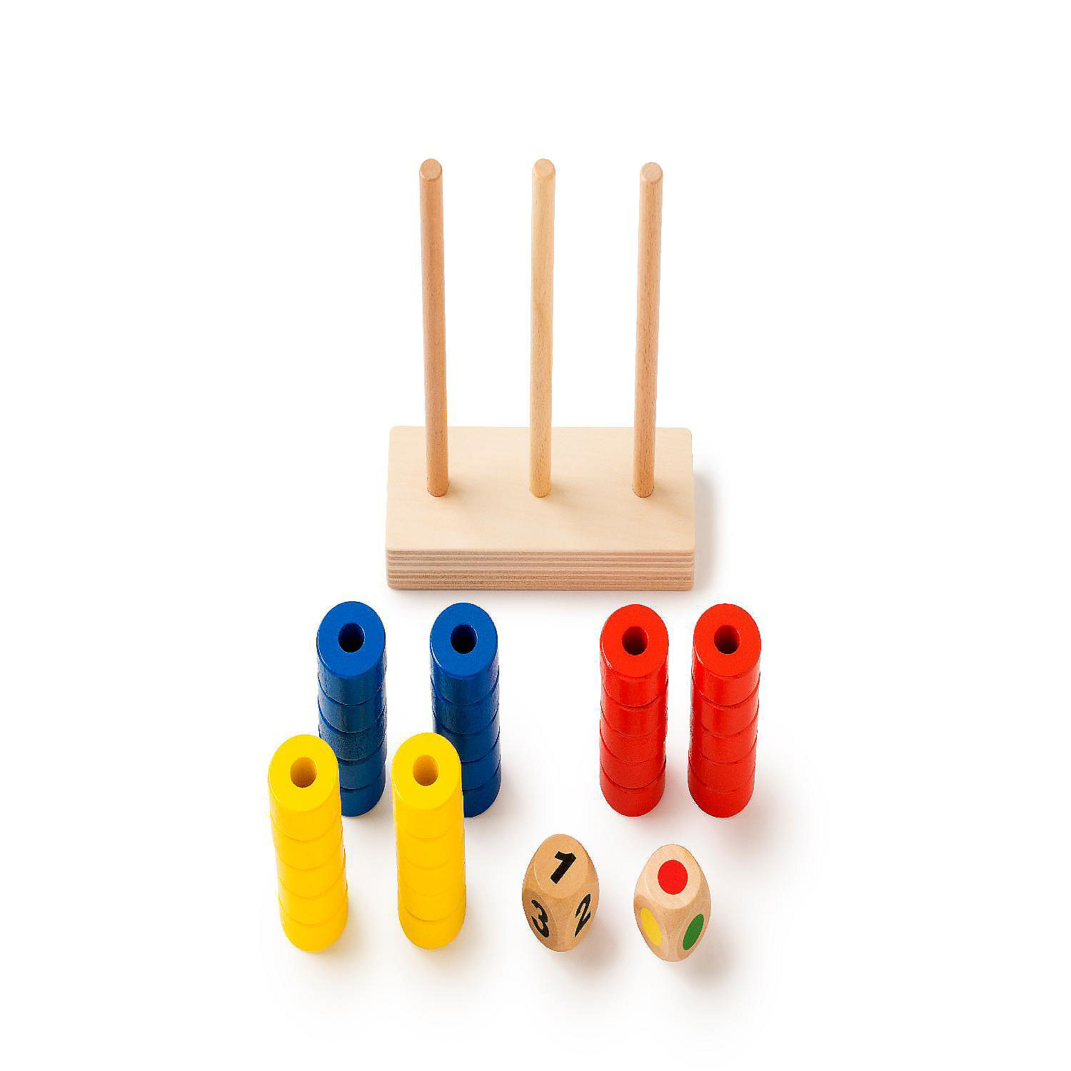 Aim to be the first to fill up the sticks by throwing dice to collect rings. Practise counting, addition and subtraction.